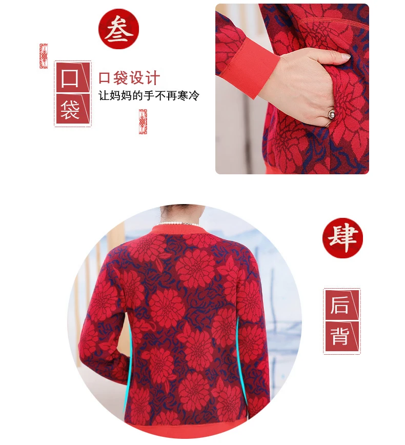.image of Winter Heating underwear for middle-aged elderly women cardigan with fleece and thick mother's autu