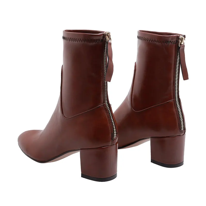 QUTAA 2020 Ankle Boots Super Square High Heel Women Shoes Zipper Pointed Toe PU Leather Motorcycle Casual Big Size 34-43