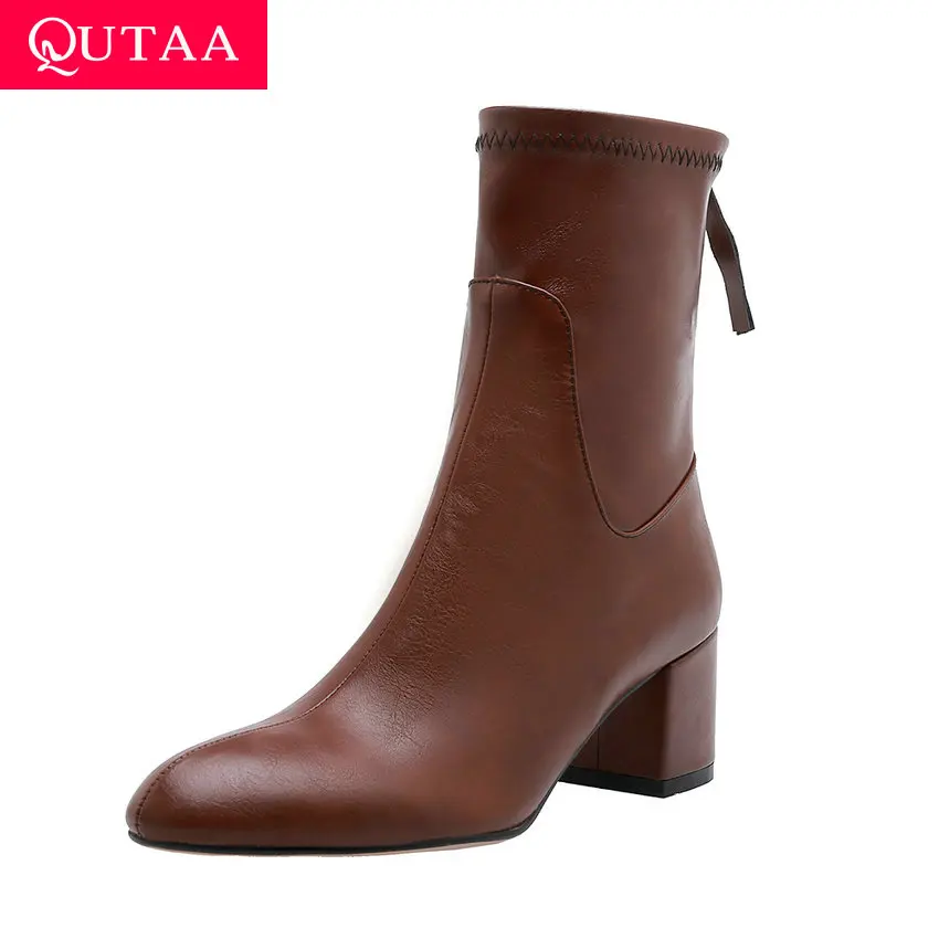 Related Product for QUTAA 2020 Women Shoes PU Leather Elegant Round Toe Square High Heel Zipper Autumn Winter Casual An