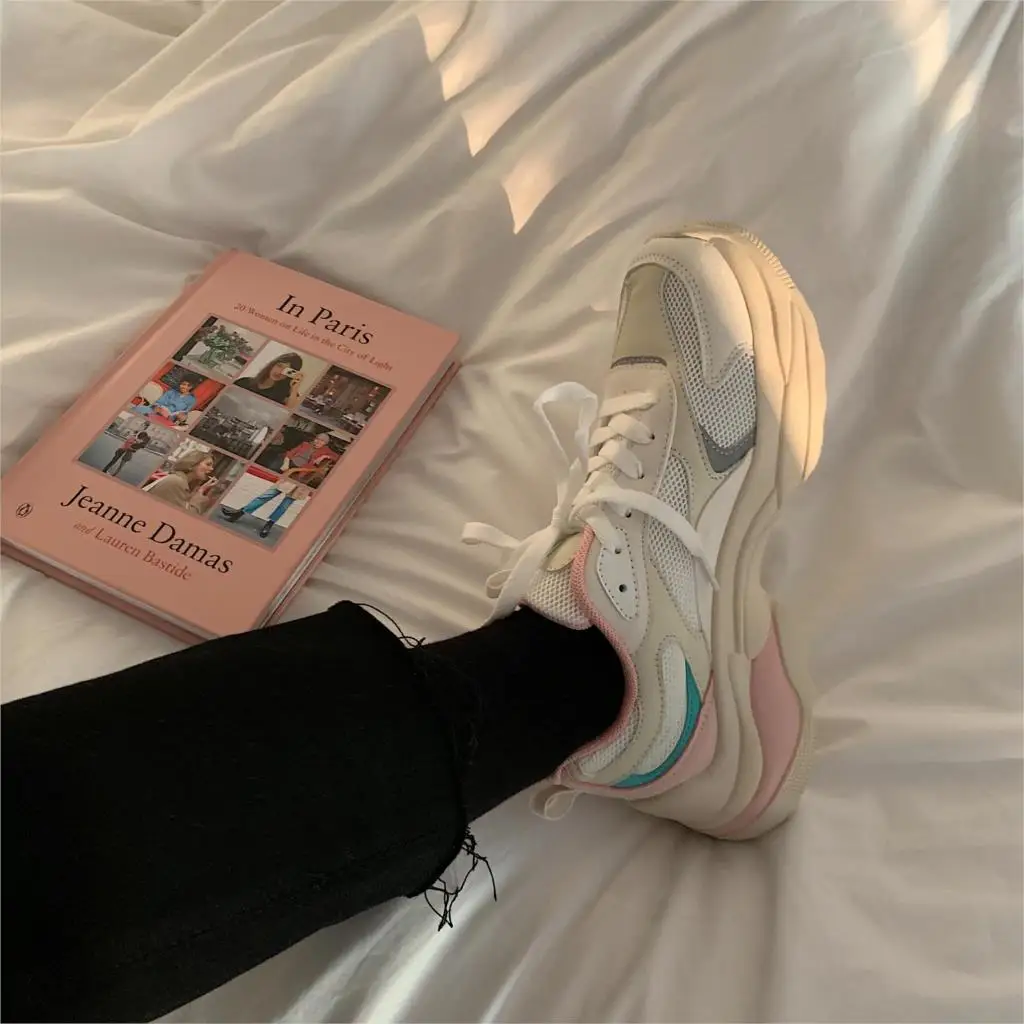 .image of Ins Super Fire Mesh Sport Shoes Korean Version Of The Port Wind Ins Street Sneakers Women's Breatha