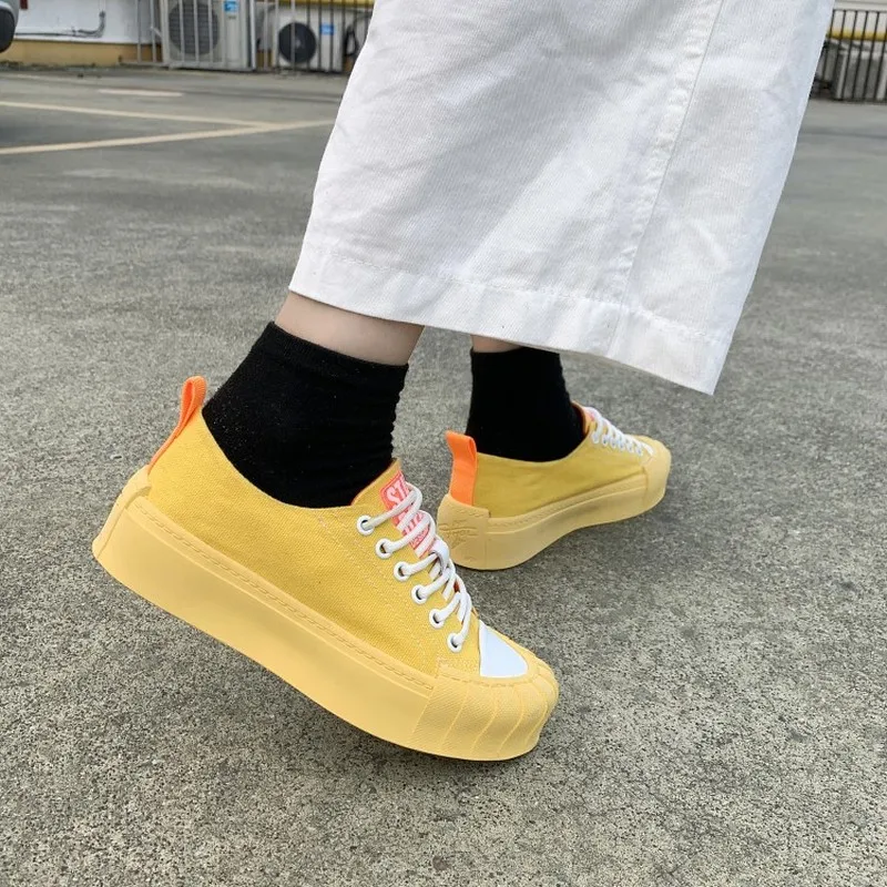 Women Platform Chunky Sneakers Korean Fashion Mixed Colors Casual Shoes Tennis Female Lace Up Woman Vulcanized Shoes K19-33