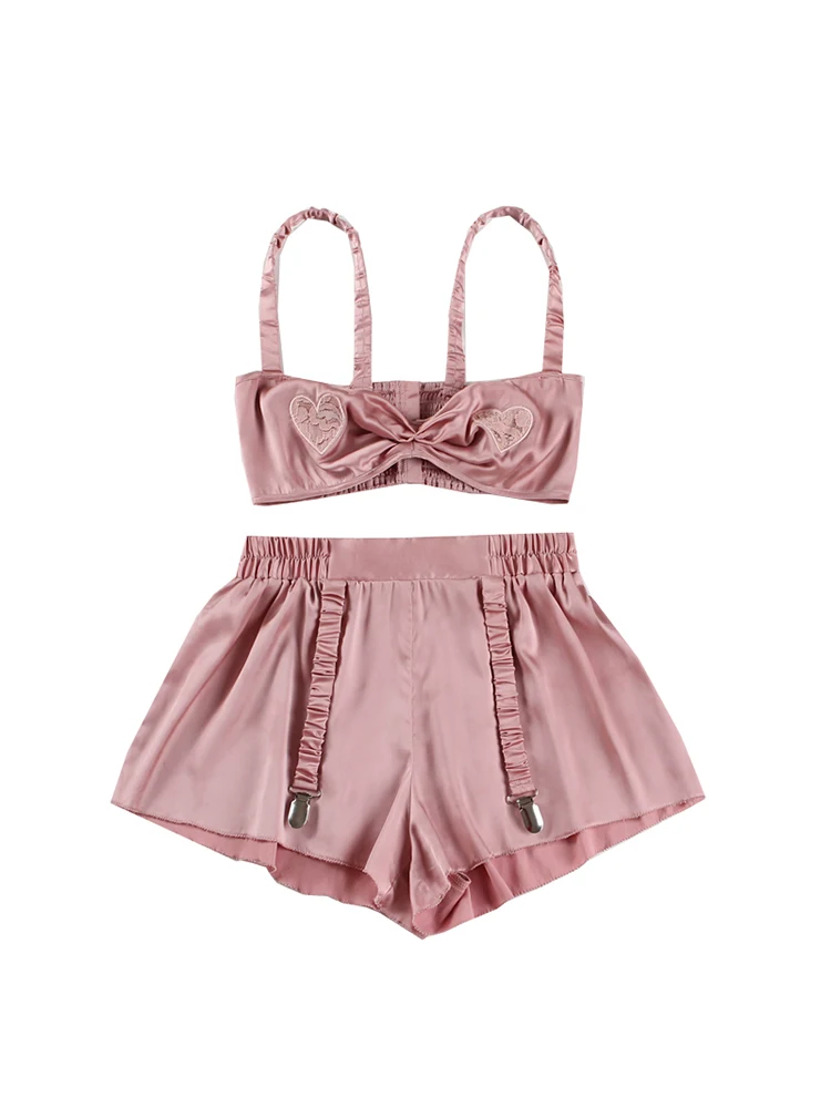 .image of Le Palais Vintage Original Exquisite Imitation Silk Pink Underwear and Boxer Shorts Home Wear Sexy