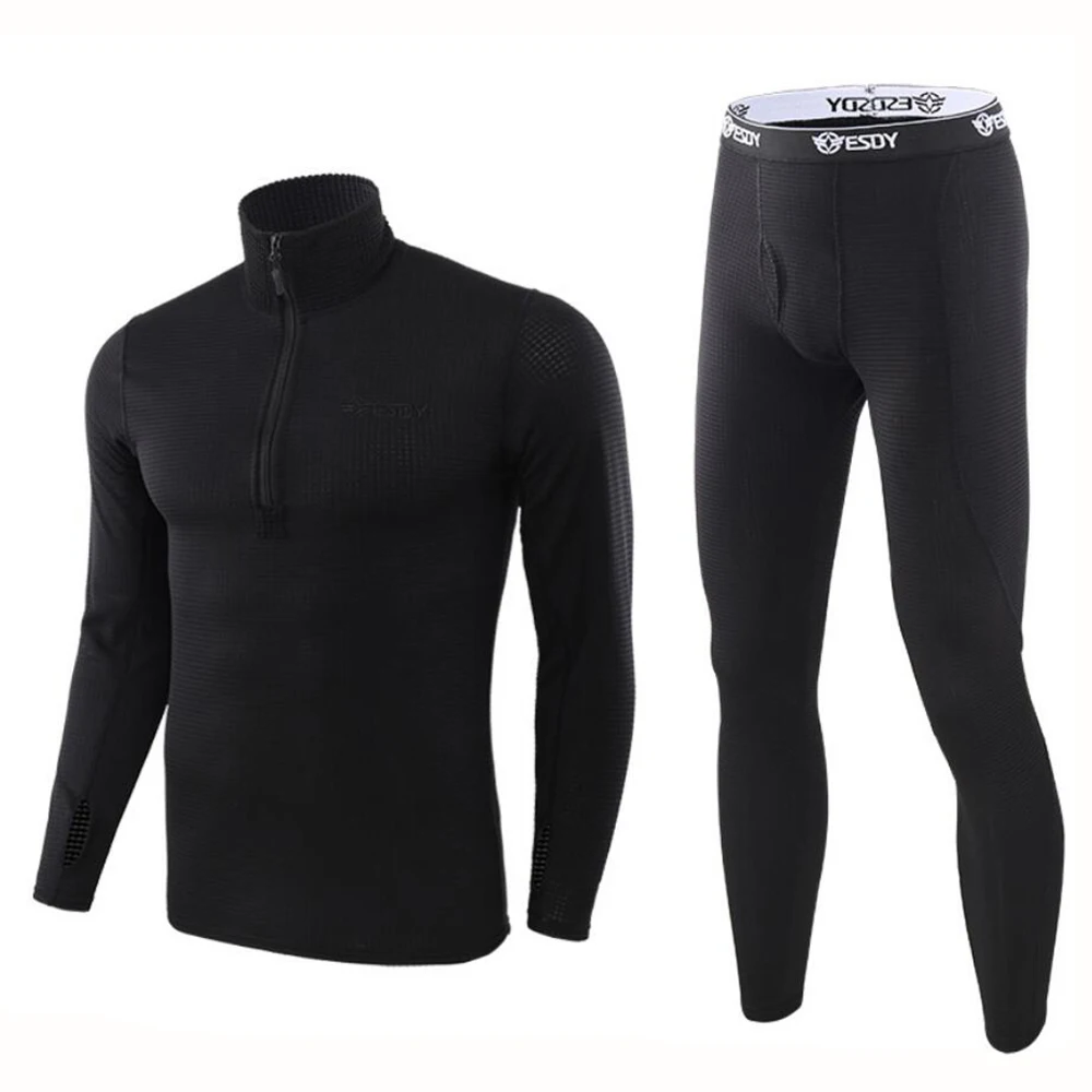 ESDY Winter Thermal Underwear Sets Quick Dry Sport Suit Running T-shirt Set Breathable Tight Long Tops & Pants Moto Jacket+Pants