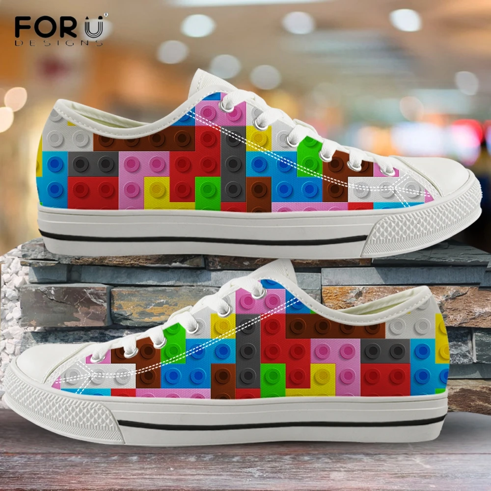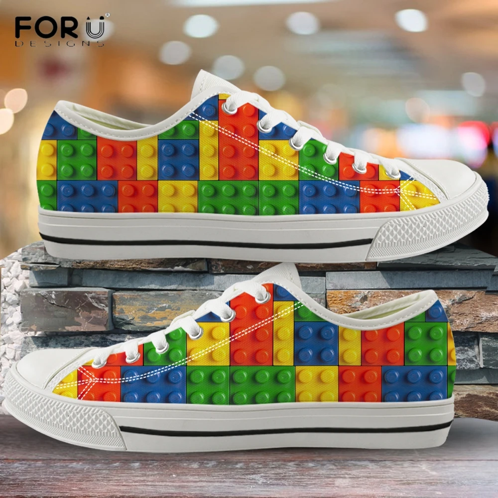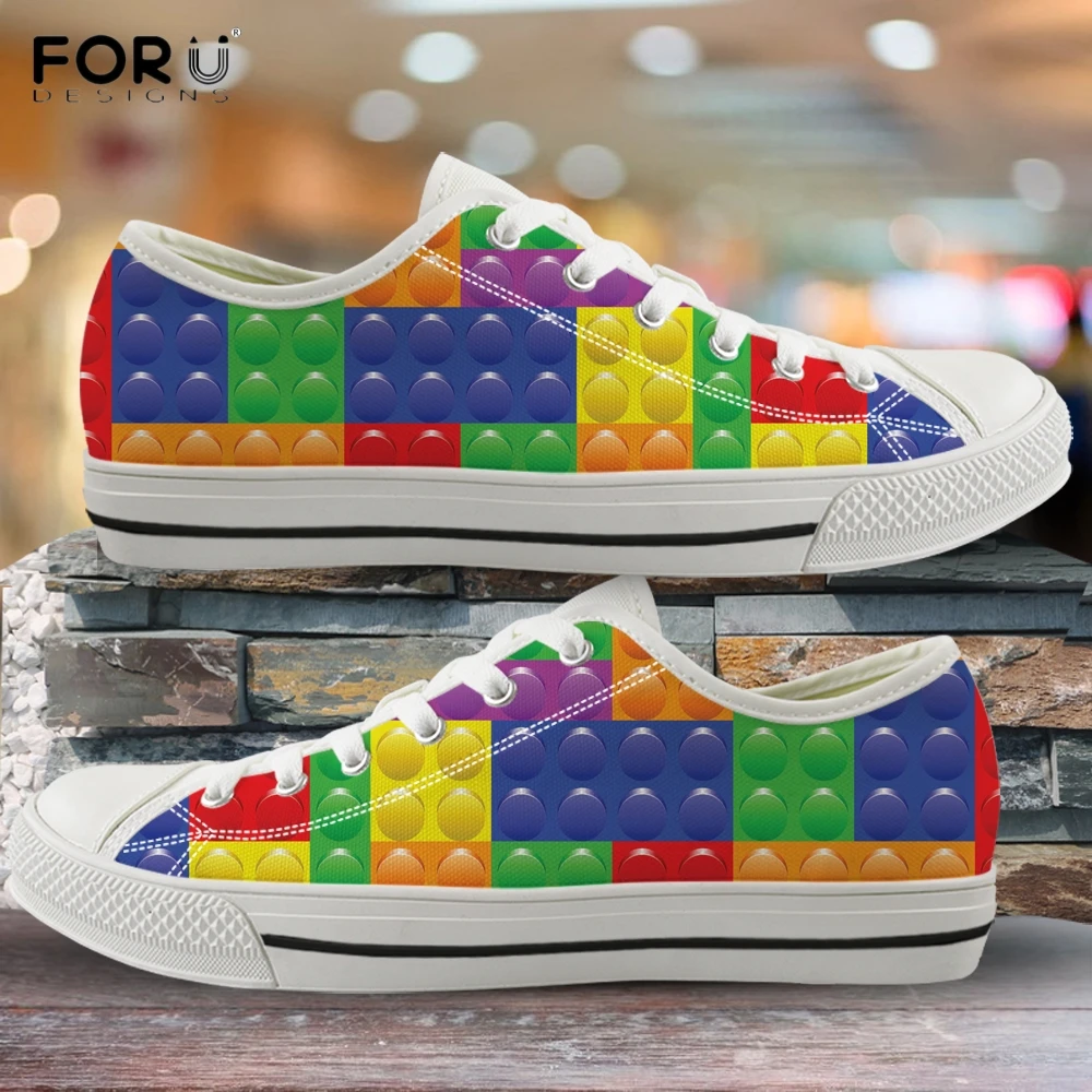 Good Offer of FORUDESIGNS Colorful Magic Cube/Geometric Pattern Sneakers Womens Shoes Lace Up Ladies Shoes Spring